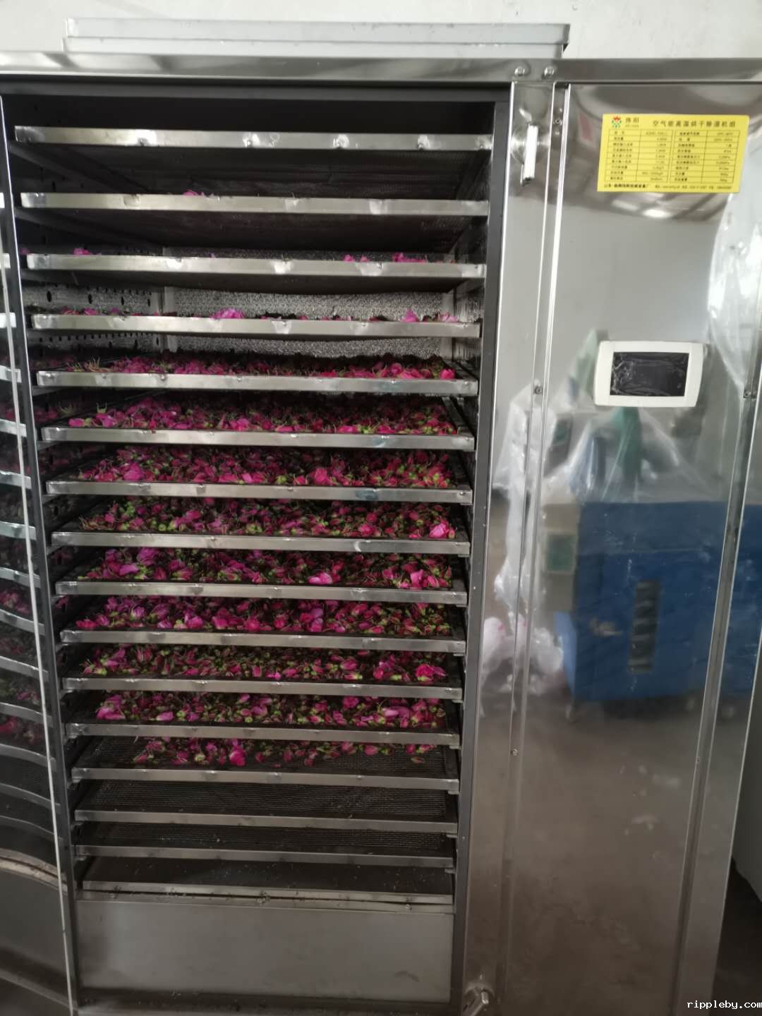 玫瑰花的干燥方法很多,常见的有自然干燥、自然阴干、速冻干燥和烘干等。其中自然干燥和自然阴干两种方法虽然可以获得很好的效果,既省力又方便。但是,采用上述2种方法都不能有效地杀死附着在玫瑰花朵上的虫卵,玫瑰干花在存放2—3个月以后会有虫子从中生出。因此,自然干燥法不宜用作玫瑰干花的商品生产。泰保玫瑰花烘干机干燥可以很好的保护玫瑰花中的有效成分,是生产玫瑰干花的方法。