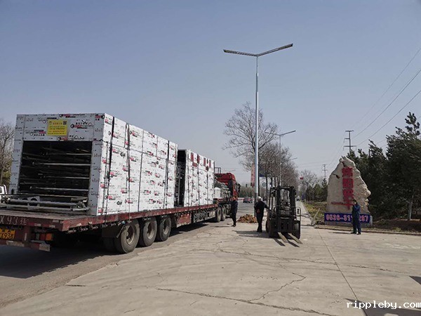 6、烘干:将草莓果单层平铺于物料盘上,将物料盘插入物料车,推入烘干房进行烘干,烘干方法先高温后低温的方式,程序设3段,段温度60度,进行温度攀升,内外均匀受热,时间2小时,进入第二段,温度升到75度,进行高温连续除湿,时间10小时,第三段温度降到62度,时间6小时,进行连续排湿,即可完成烘干工艺。