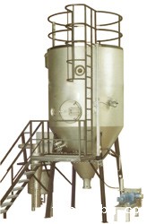 离心式喷雾干燥机系气液两相并流式干燥设备,采用高速离心式雾化器,将料液雾化成微细的雾滴,与经分布器分布后的热空气在干燥塔内混合,迅速进行热质交换,在短的时间内干燥成为粉状产品。生产控制和产品质量控制方便可靠,广泛应用于不同种类液体物料的干燥生产。
